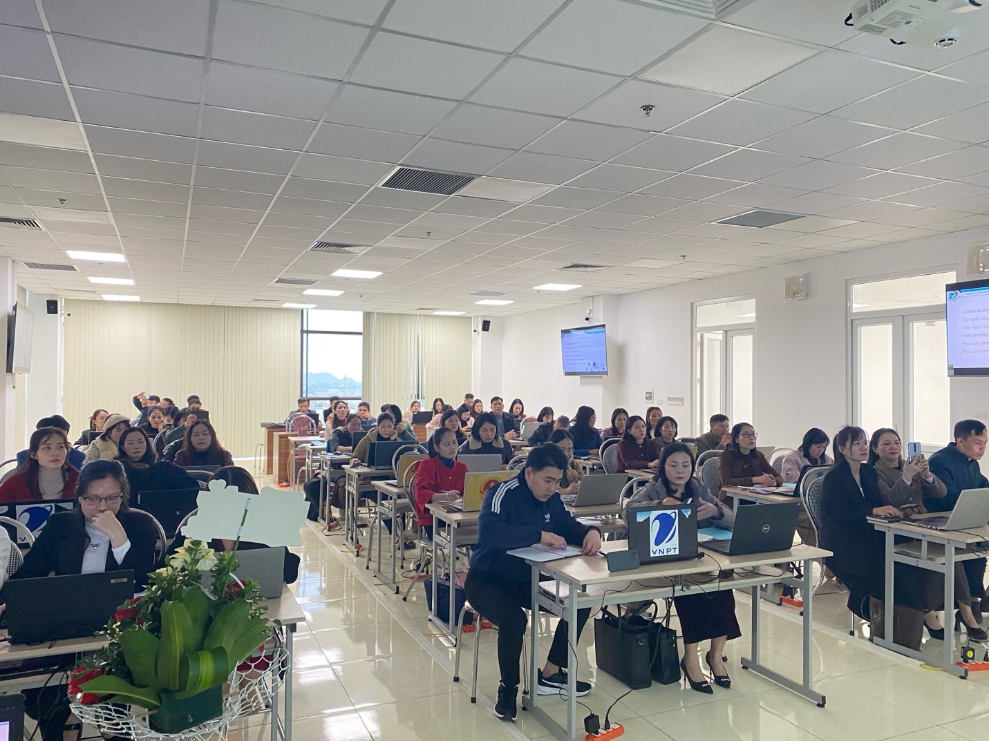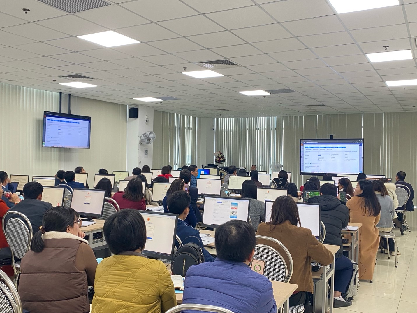 Tại buổi tập huấn, các học viên đã được các Giảng viên của đơn vị phát triển phần mềm truyền đạt, hướng dẫn lý thuyết kết hợp thực hành trong việc sử dụng phần mềm Quản lý văn bản và Hồ sơ công việc dùng chung của tỉnh, phần mềm ký số cho đối tượng là các cán bộ thuộc các đơn vị sự nghiệp các sở, cơ sở giáo dục thuộc 166 xã, phường.